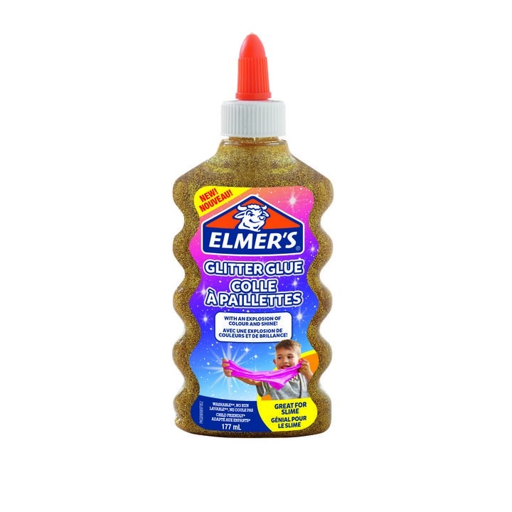 Lepilo z zlatimi bleščicami ELMER'S za ustvarjanje ali pripravo sluzi.