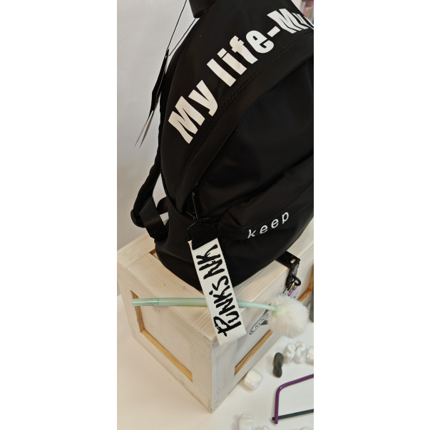 1 x zelo moden črno/bel nahrbtnik s čudovitimi detajli, kar pa najbolj navduši pa je MATERIAL (super za čiščenje)