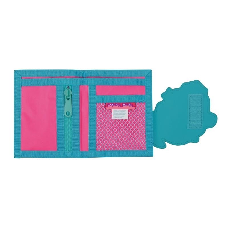 Otroške denarnice so pravi naslov za shranjevanje in zapravljanje prvih žepnin vaših otrok. Dvodelna denarnica je narejena iz poliestra, razen našitkov (vinil) in žepkov iz najlona, zapira se z ježkom, ima žep za bankovce, žepek za kovance, kateri se zapira z zadrgo, ter dva manjša žepka. Je idealen modni dodatek. Sestava: poliester, PVC, najlon. Velikost: 18cm x 11,5cm (odprta).
