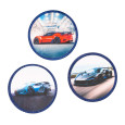 • najboljša zabava: vsebuje tri različne našitke  z motivom hitrih vozil (na ježka), katere se lahko menja po želji