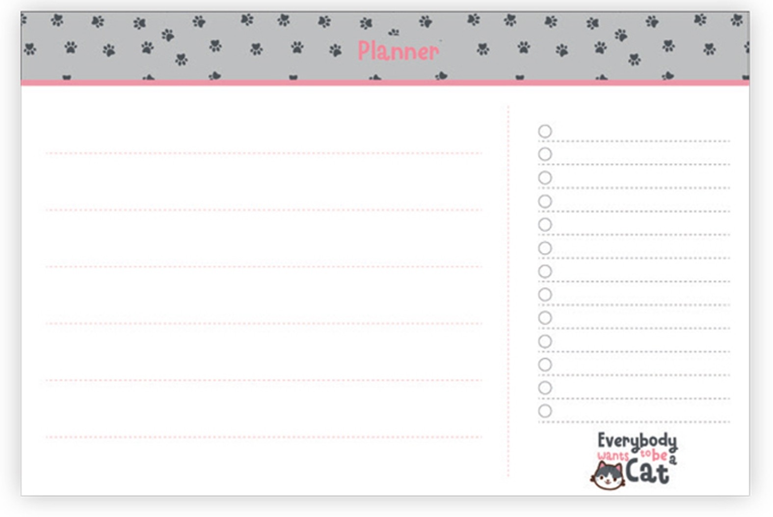 Namizni planer za zapisovanje in lažje načrtovanje, z motivom muce.