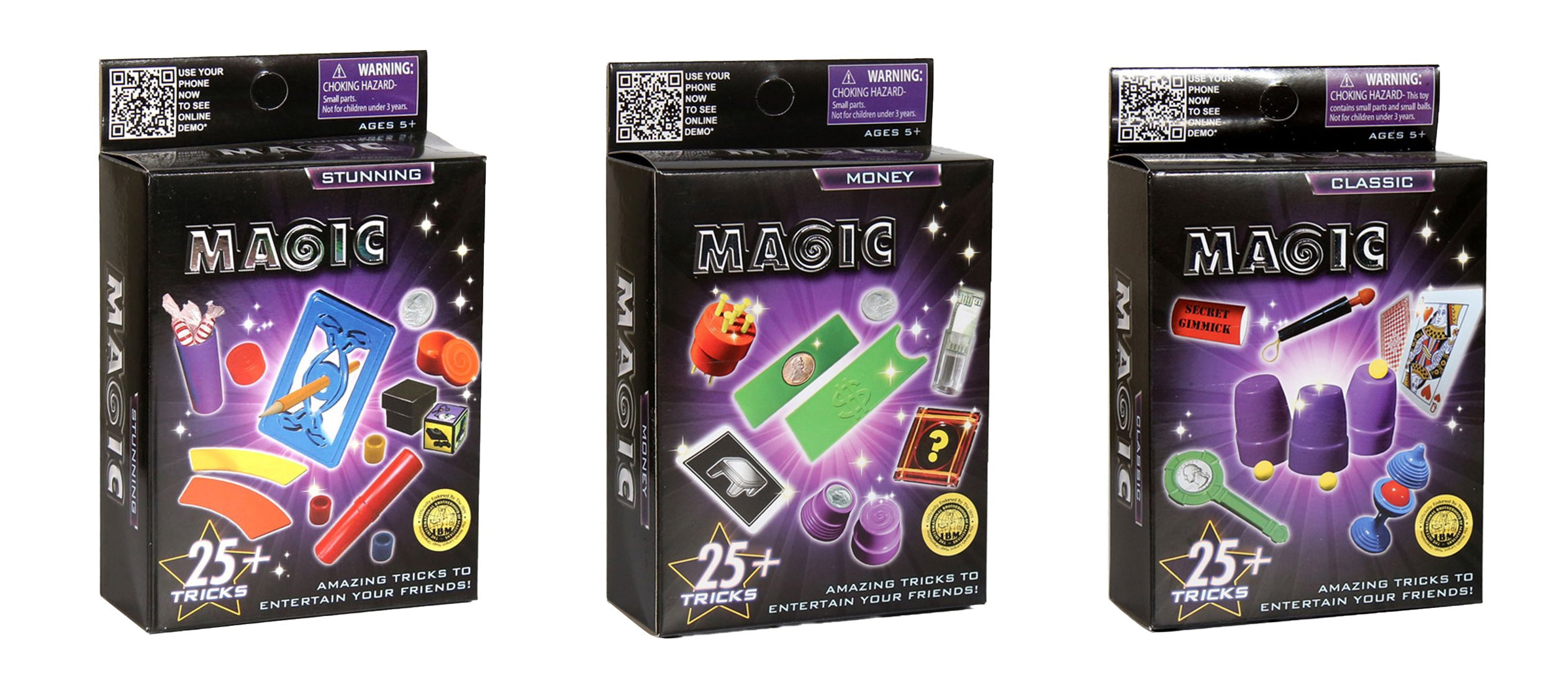 • trije različni paketi, kjer ima vsak paket  za več kot 25 različnih čarobnih trikov