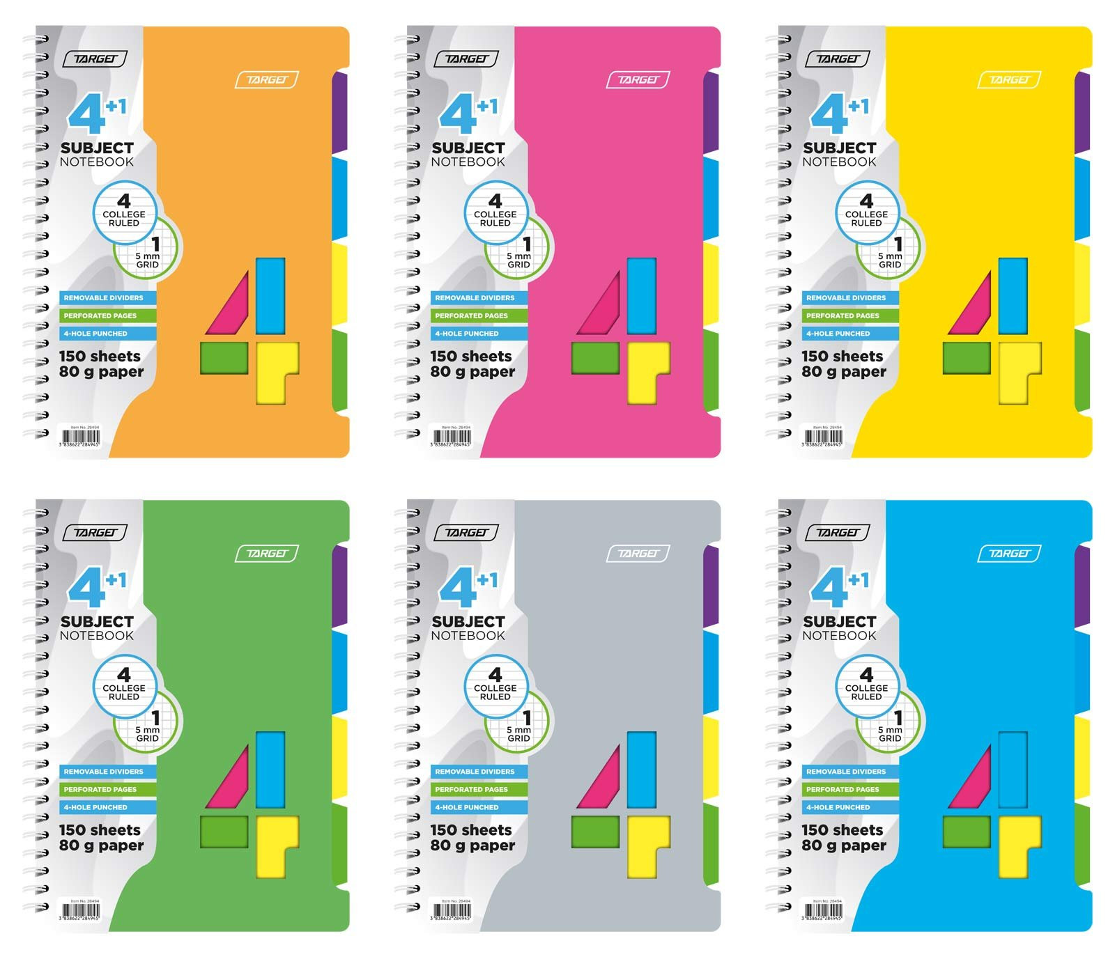 Zvezek s spiralo 4 + 1 predmetov (črte + karo) format A4